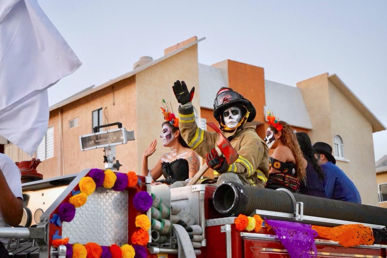 Con gran participación ciudadana, el XV Ayuntamiento de Los Cabos celebró el Día de Muertos en el corazón de Cabo San Lucas, a través de la Delegación Municipal, encabezada por Karina de la O Uribe, quien encabezó el Desfile Vial organizado por Canirac y el Festival Mar de Ofrendas, enmarcado dentro del programa “Viva La Plaza”, impulsado por la Asociación de Empresarios de Los Cabos.