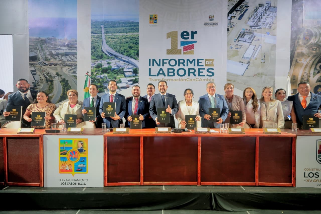 Con la convocatoria a continuar unidos en la transformación de Los Cabos el presidente municipal, Christian Agúndez Gómez destacó en su mensaje del Primer Informe de Labores la obra pública, los apoyos asistenciales y el constante respaldo de la presidenta Claudia Sheainbaum Pardo, así como el gobernador Víctor Castro Cosío además destacó los resultado en materia de obra pública, inclusión social, seguridad y la reafirmación en el ámbito turístico del destino.